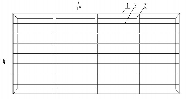 2、從工藝上看,傳統(tǒng)的鋼格柵板需要噴砂,端切,組焊,刷漆;本實用新型需要端切,組焊,噴涂;由此可見,本實用新型的加工步驟更少,另外,本實用新型的組焊過程更為簡單;