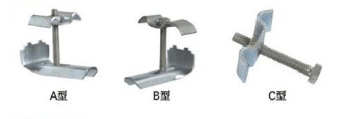 A 型:由一塊帶雙鉤的上壓板,一塊帶齒的下壓板及一個 M8 的內(nèi)六角螺栓組成。可方便、快捷的鋼格板固定于平臺梁上。