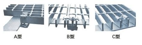 鋼格板安裝夾原則上一般一平米鋼格板不少于 4 套鞍形夾, 安裝在鋼格板的 4 個角上。但是對于跨距較大的鋼格板最好在可利用的支承物上多安裝幾套,數(shù)量上也應(yīng)適當(dāng)增加。 鞍形夾是最常用的固定方式。大致有三種類型:A型 B型 C型。