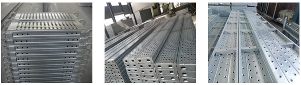由于鋼板本身比木板的摩擦系數小的多,所以對鋼板必須采取防滑措施,才能確保工人在高空作業的安全。目前國內鋼跳板的防滑板面主要有反邊圓孔、圓凸鼓、梅花長孔、梅花凸鼓以及橫長凸鼓等多種。