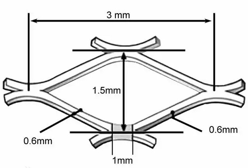 梗(Strand):鋼板網(wǎng)菱形孔的邊(如圖)梗寬就是制作一根絲梗所用金屬板的長(zhǎng)度。