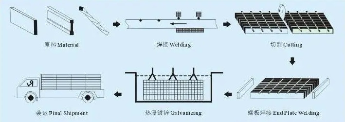 壓焊鋼格板采用高壓電阻壓焊機,機械手自動將橫桿橫放在均勻排例的扁鋼上,通過強大的電焊功率和液壓力將橫桿壓焊入扁鋼內,從而可以得到焊點堅固,穩定性和強度極高的高品質鋼格板。鋼格板在壓焊完成之后,用圓盤冷鋸機來沿鋼格板原板橫向進行割鋸,將整塊鋼格板切斷分成業主要求的尺寸的板塊,然后進行焊接封邊。目前國內大多數的企業采用的是圓盤冷鋸機來作為鋼格板的剪切工具,國外的大多數企業采用豎向剪切專用機床。鋼格板行手工焊封邊后,要對其表面進行處理。處理的方法具體有熱鍍鋅、冷鍍鋅、噴漆或是不處理。其中防銹效果****的屬于熱鍍鋅且其應用也最為廣泛。