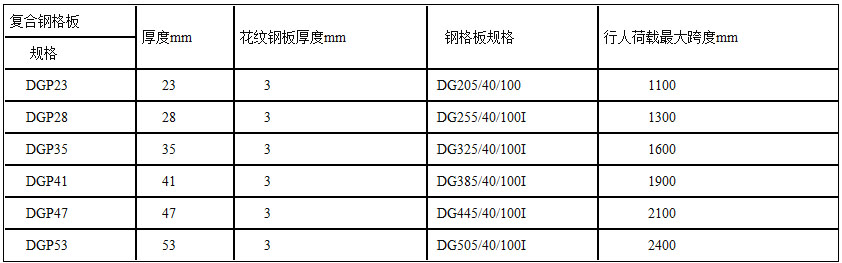 D G P 11 其中P表示復(fù)合鋼格板,后面數(shù)字表示其厚度。上表只是一些常用標(biāo)準(zhǔn)復(fù)合鋼格板。也可采用更厚的花紋板和其他規(guī)格的鋼格板。如有別的要求可以來電訂購。