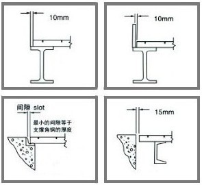 虛線為規(guī)定切除,實(shí)線為實(shí)際切除 矩形切口按下一根負(fù)載扁鋼能讓障礙物通過來制作