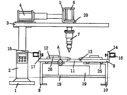 目前現(xiàn)有焊接裝置存在一定的缺陷,傳統(tǒng)焊接裝置難以快速靈活改變焊接位置,多需要人工手動(dòng)挪位,較為費(fèi)時(shí)費(fèi)力。介紹一種鋼格柵板專用機(jī)器人自動(dòng)焊接裝置,包括:支架,支架包括立柱和頂板,頂板固定在立柱的頂端;焊接組件,焊接組件安裝在支架上,焊接組件包括焊接部分和移動(dòng)部分,移動(dòng)部分用于實(shí)現(xiàn)焊接部分的上下以及左右移動(dòng);托架,托架上設(shè)有托料組件,托料組件設(shè)在焊接部分的下方,且托料組件包括擱料部分和抵緊部分,抵緊部分用于抵緊擱料部分上放置的鋼格柵板;前后移動(dòng)部分,前后移動(dòng)部分用于實(shí)現(xiàn)擱料部分的前后移動(dòng)。