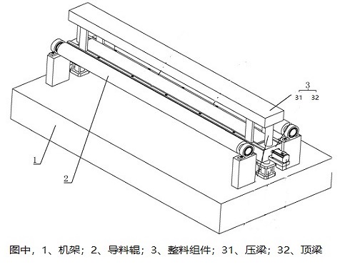 扁鋼經過導料輥進入壓焊機內進行壓焊工作,扁鋼在經過導料輥的過程中,頂撐氣缸將頂梁頂起,頂起的過程中,對多根扁鋼進行規整。頂梁將扁鋼頂起一段高度后,頂撐氣缸收縮伸縮桿,此時扁鋼下落至導料輥上,壓梁在繼續下降的過程中,對扁鋼進行壓整,以此使得扁鋼能夠以更加整齊的狀態進入壓焊機內。通過頂梁和壓梁的升降配合,能夠對扁鋼進行規整,具有在扁鋼進入壓焊機前,對扁鋼的高度進行規整的優點。